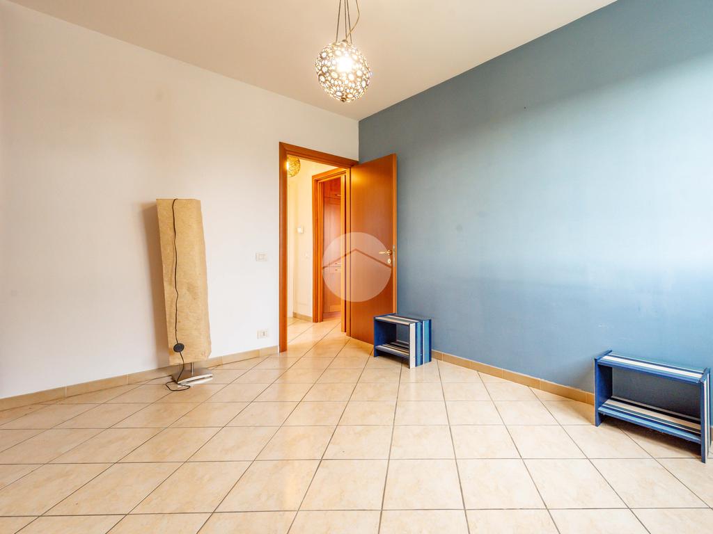 L’ingresso si apre su un ampio soggiorno, caratterizzato da una porta finestra che consente l’accesso a un comodo terrazzo, ideale per momenti di relax all’aperto.