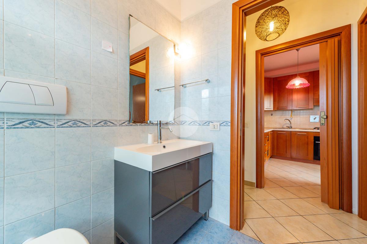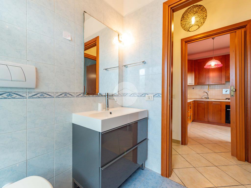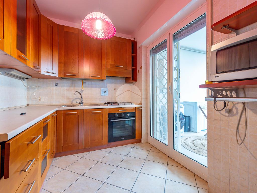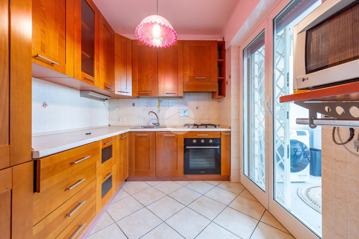 La cucina, separata e abitabile, dispone anch’essa di una porta finestra che conduce a un secondo terrazzino, anch’esso vivibile, perfetto per pranzi e cene all’aperto.