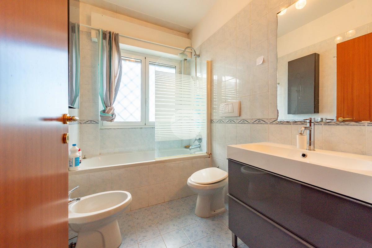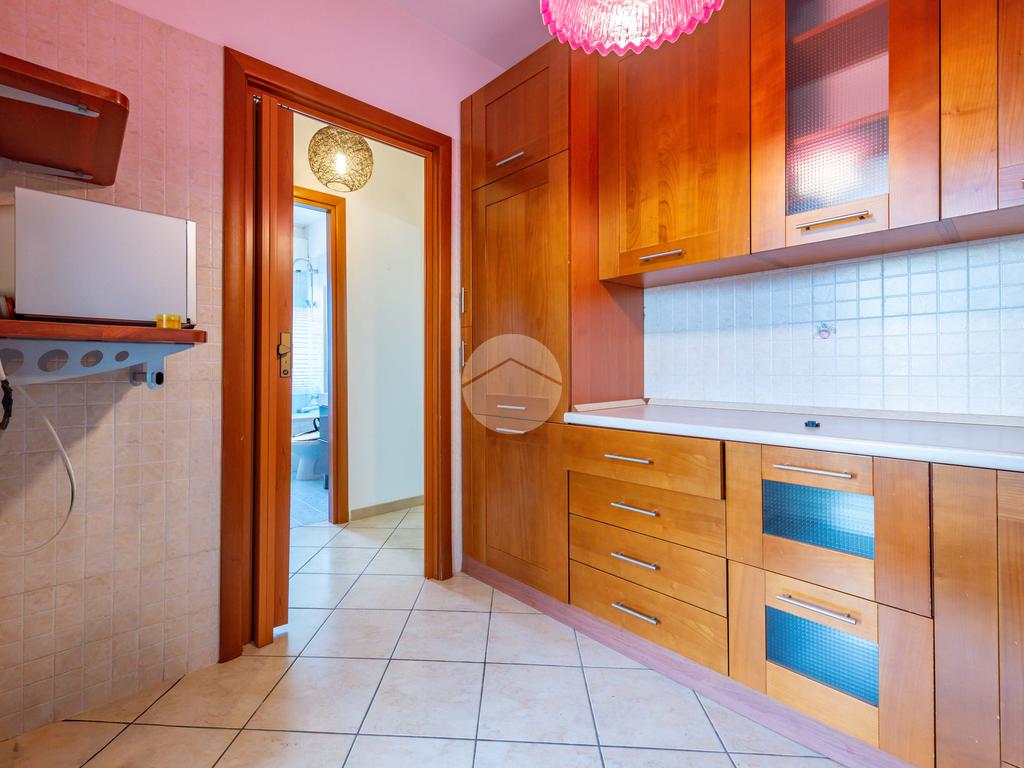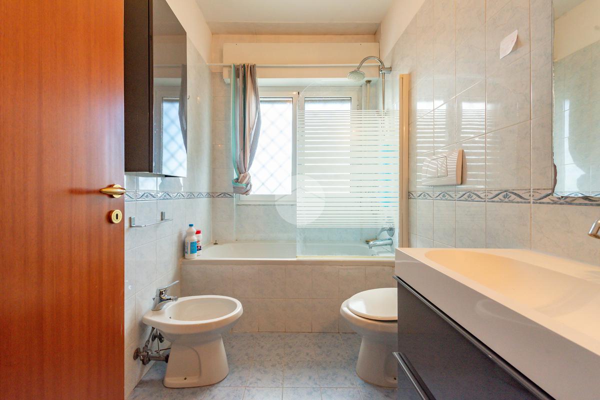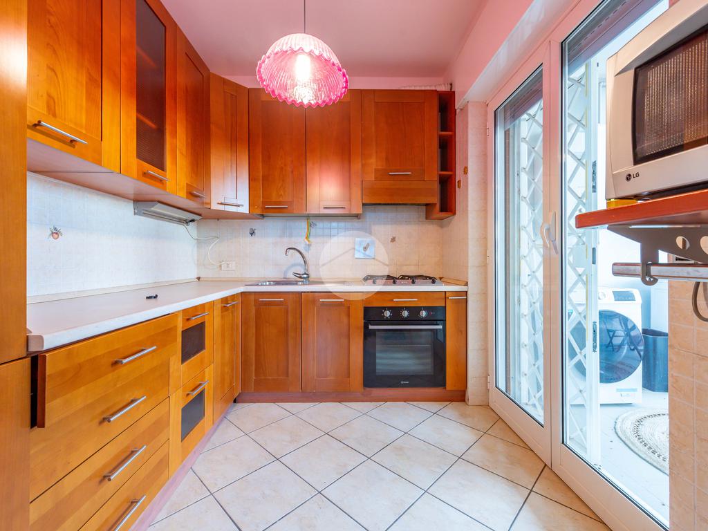 La cucina, separata e abitabile, dispone anch’essa di una porta finestra che conduce a un secondo terrazzino, anch’esso vivibile, perfetto per pranzi e cene all’aperto.
