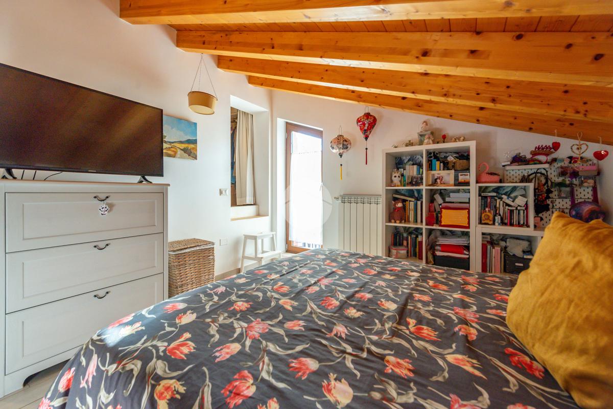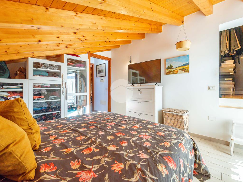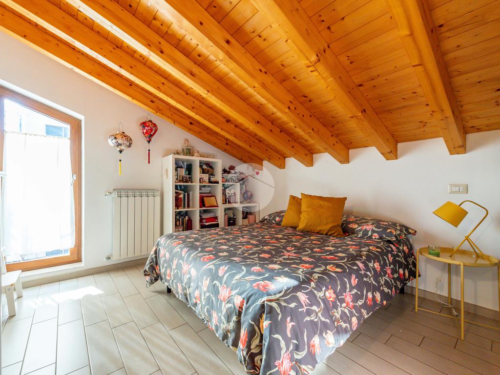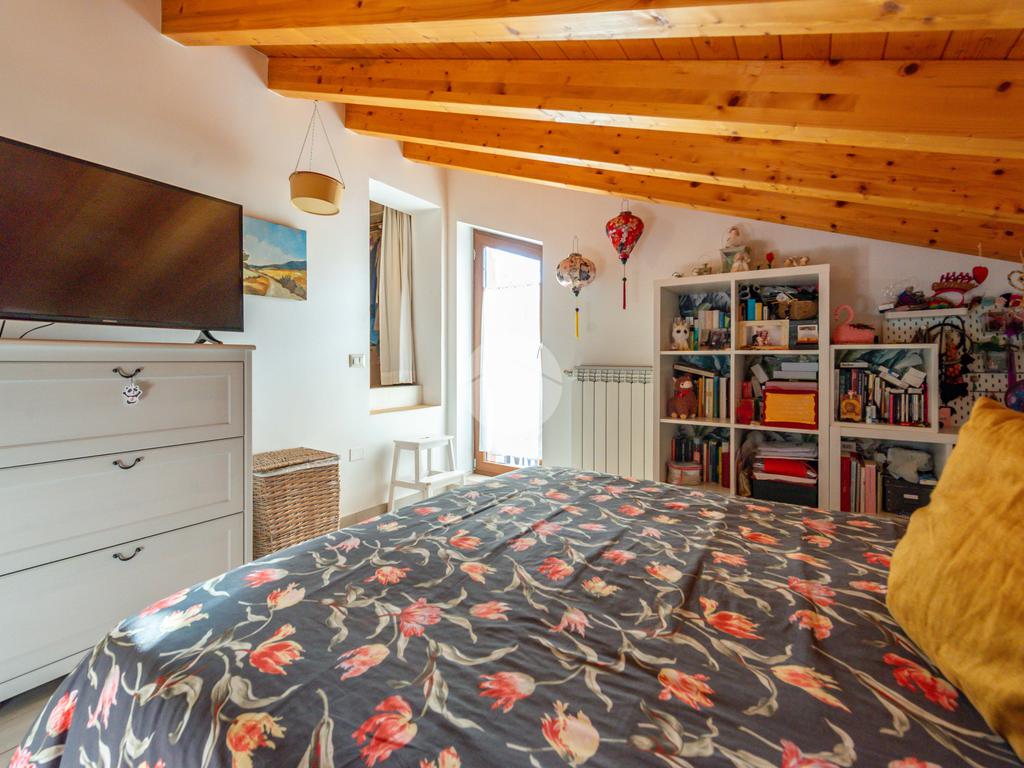 La camera matrimoniale, anch’essa con accesso su un balcone di proprietà, garantisce privacy e una piacevole continuità tra interno ed esterno.