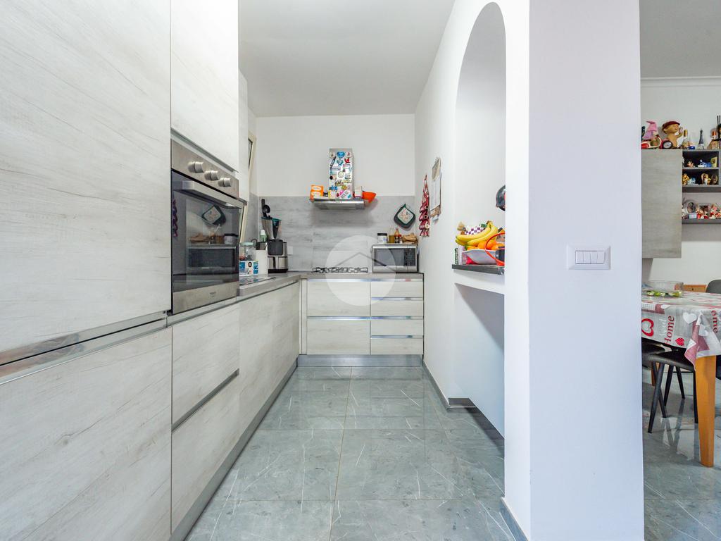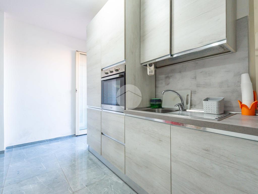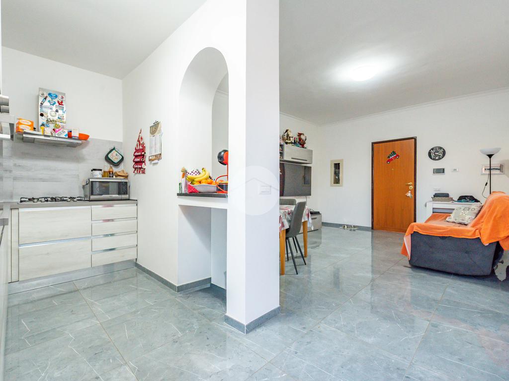 All’interno l’appartamento si apre su un luminoso soggiorno con cucinotto a vista, ambiente accogliente e funzionale.