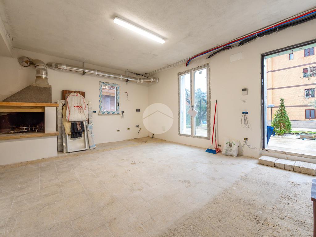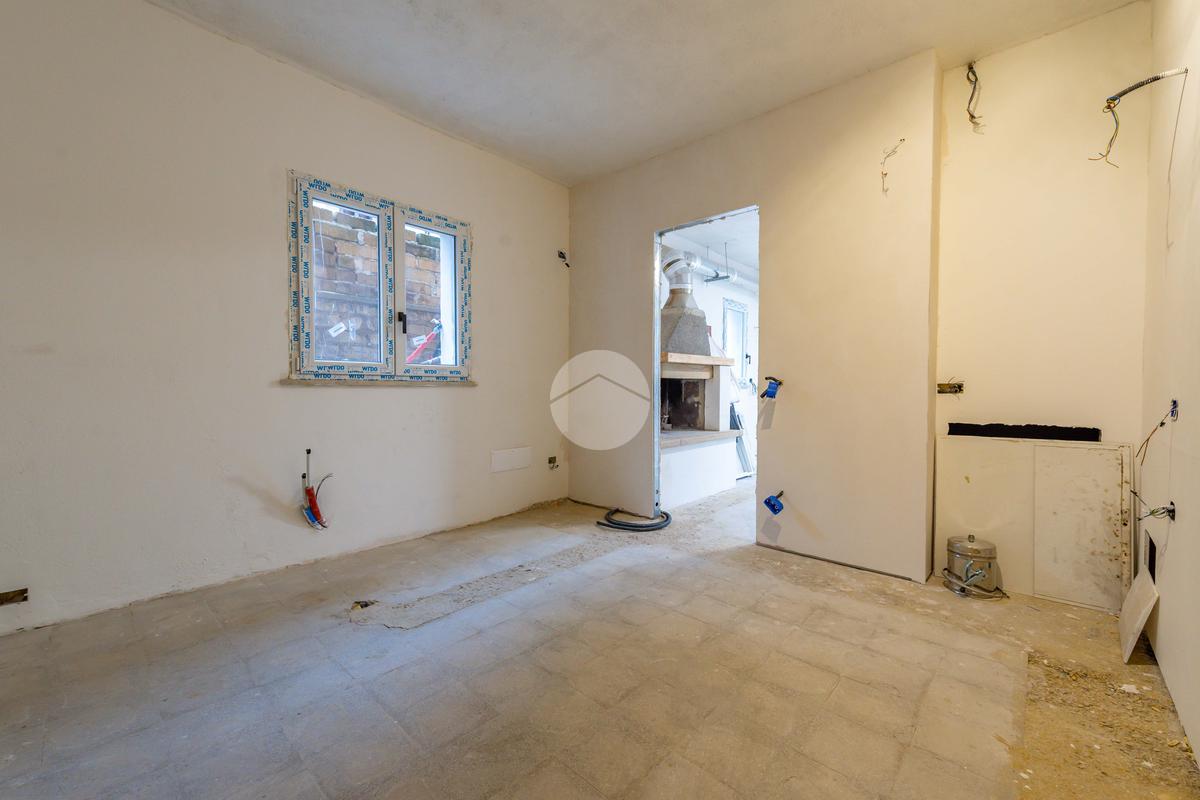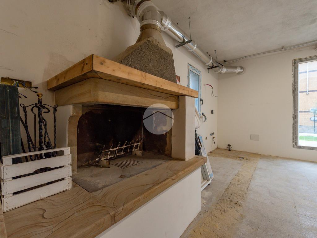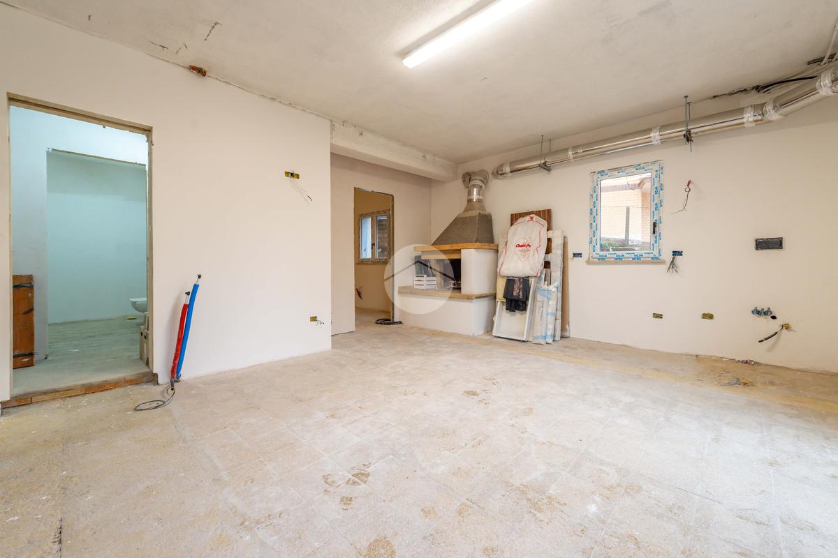 ambiente principale con predisposizione per angolo cottura e camino.